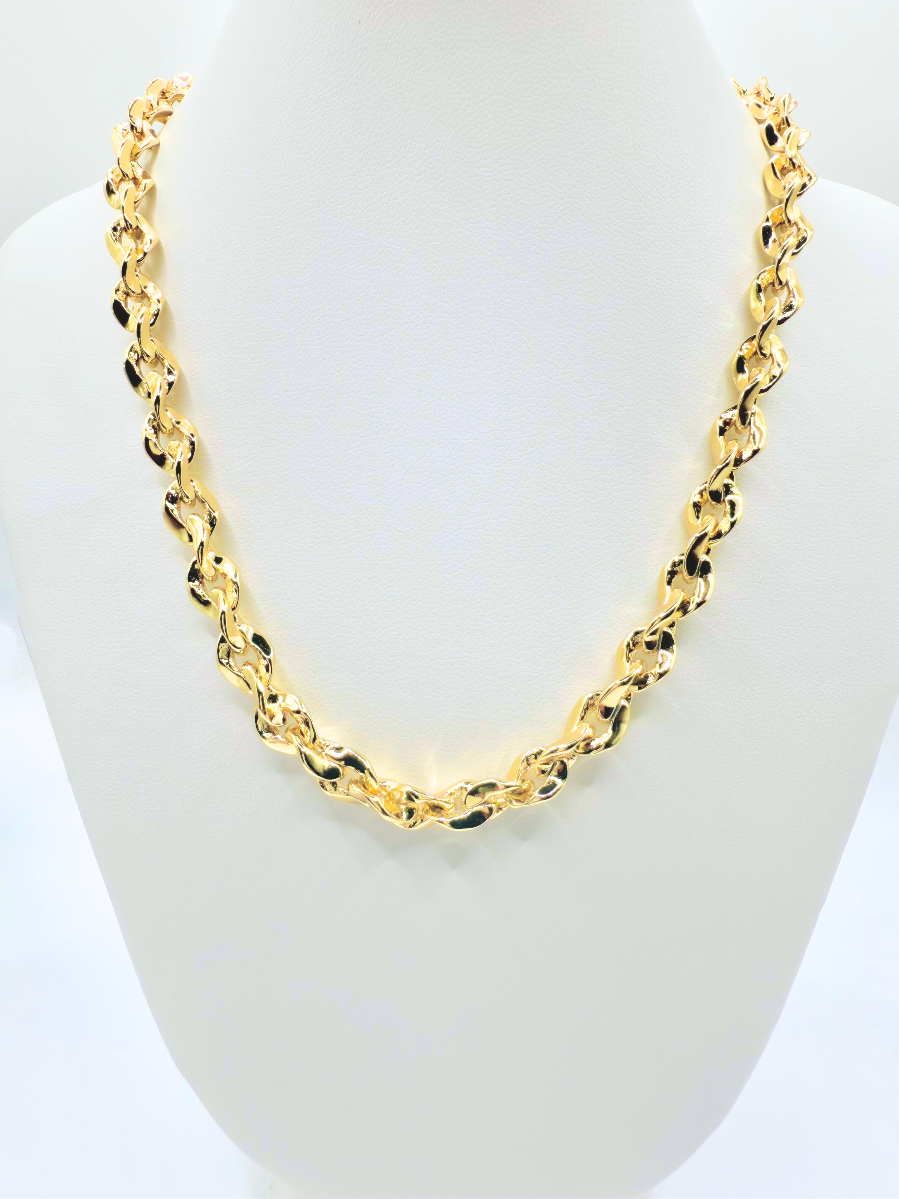 Meet your new favorite statement piece. The Twist Luxe Chain is bold, shiny, and full of personality. With its chunky, twisted design and high shine gold finish, this necklace instantly levels up any outfit from your favorite tee to a night out dress. It’s that one piece that makes everything feel a little more put together (and a lot more fun).